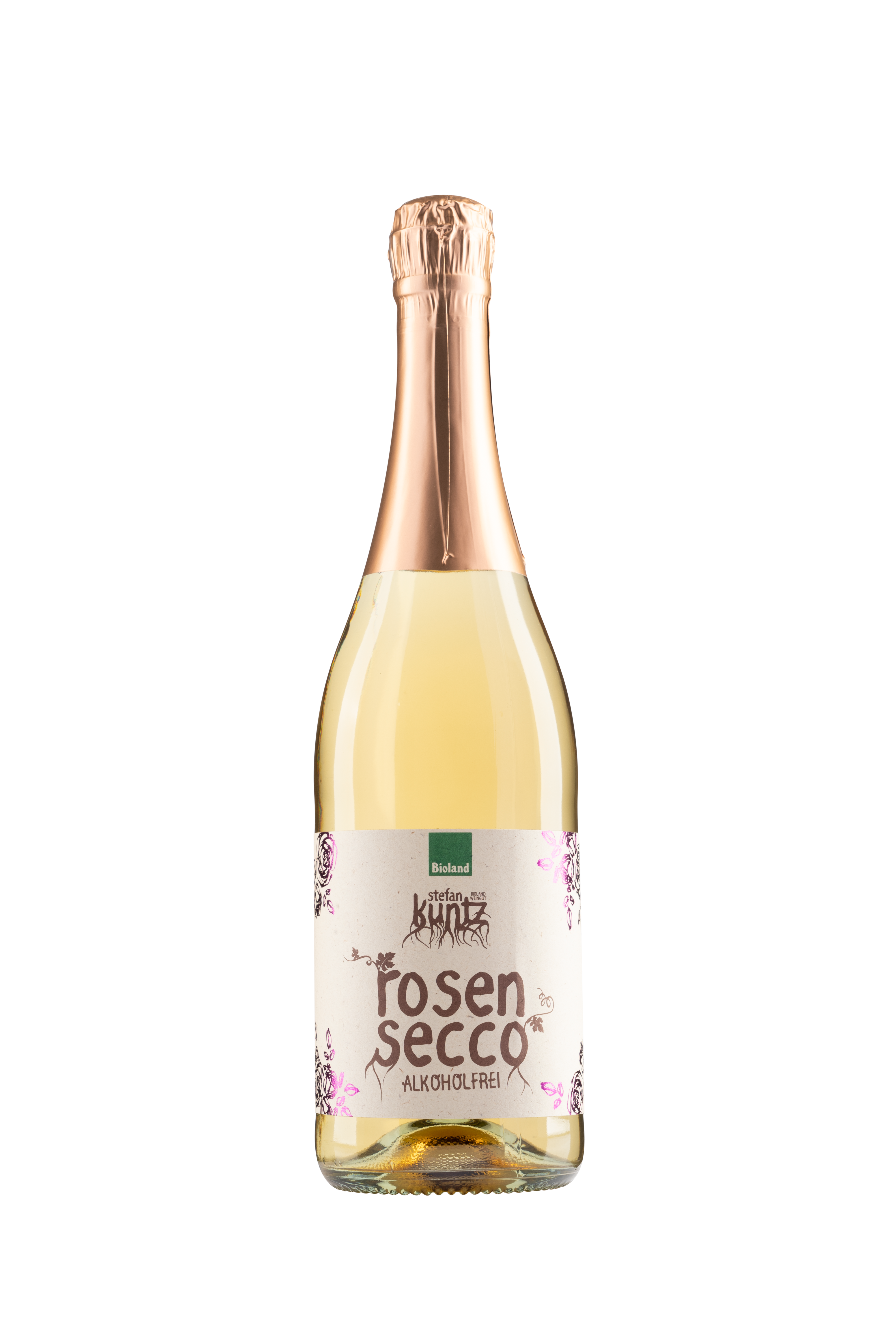 Null % Rosensecco ist ein alkoholfreier Secco auf Traubensaftbasis, veredelt mit einem feinen Extrakt aus duftenden Rosenblüten. Aromatischer Bukettraubensaft aus Cabernet Blanc und Muskateller trifft auf belebende Kohlensäure – floral, frisch und klar. Ein stilvoller Begleiter für bewussten Genuss.