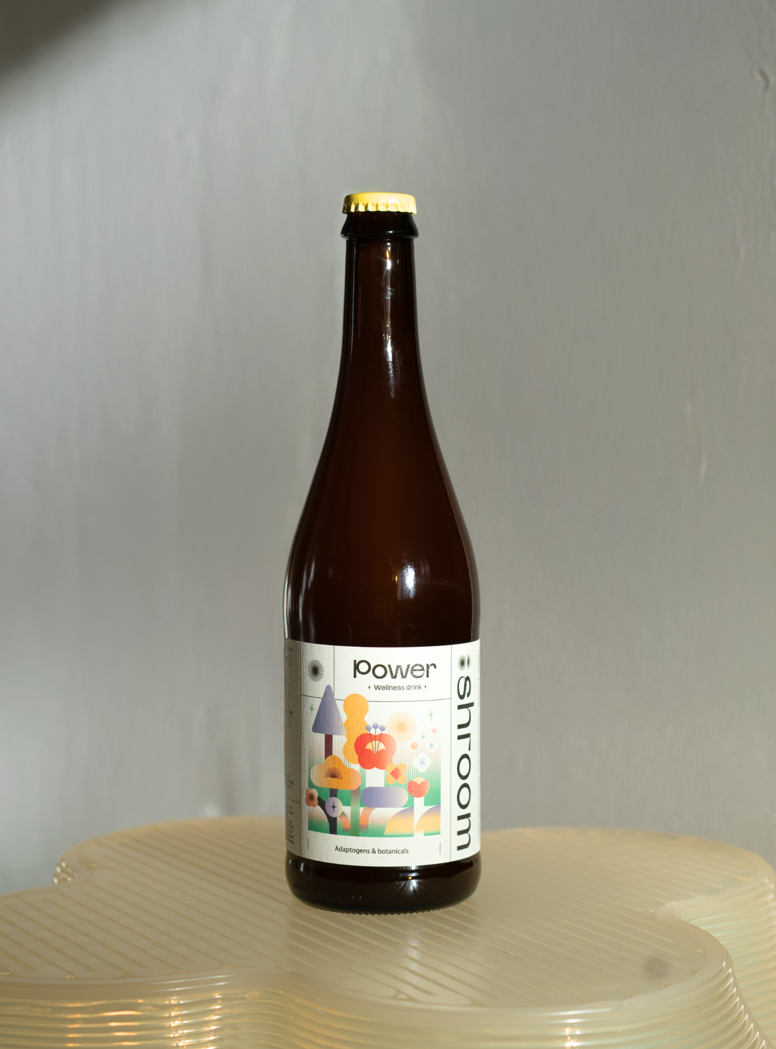 Shroom Relax – adaptogen drink for evenings. Lion's mane, hops, aronia base. No sugar added. Made for sharing at the table.